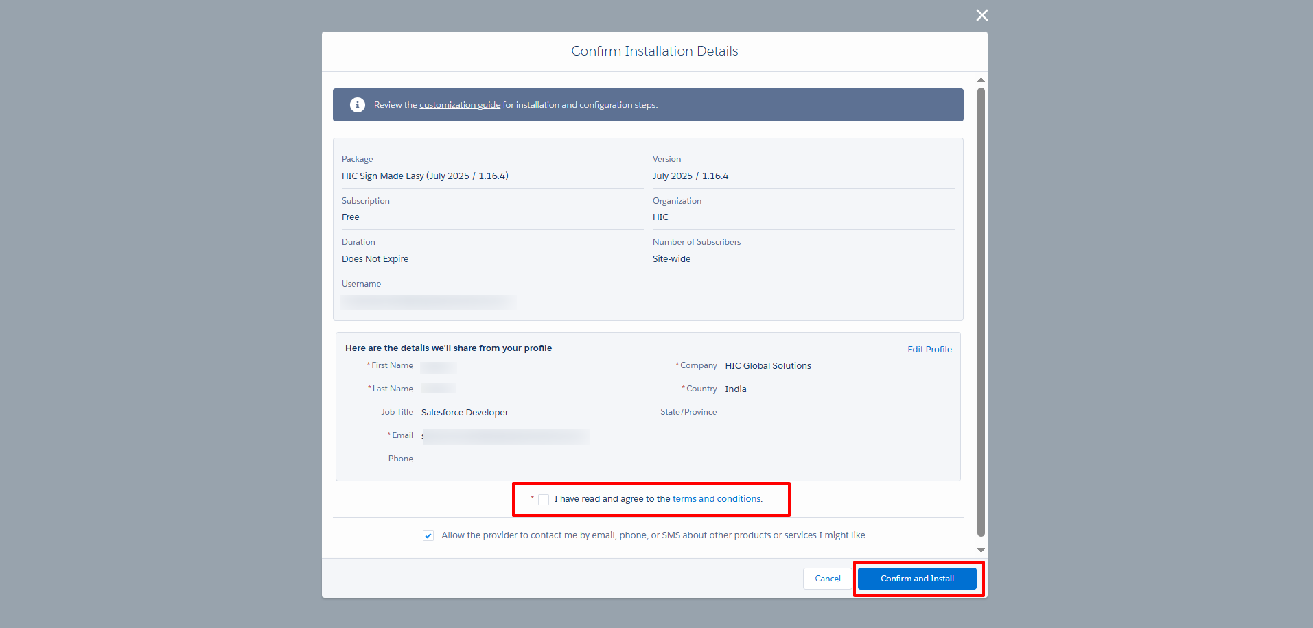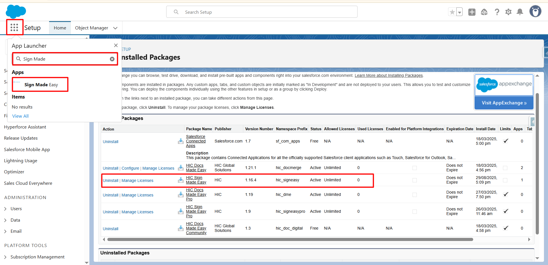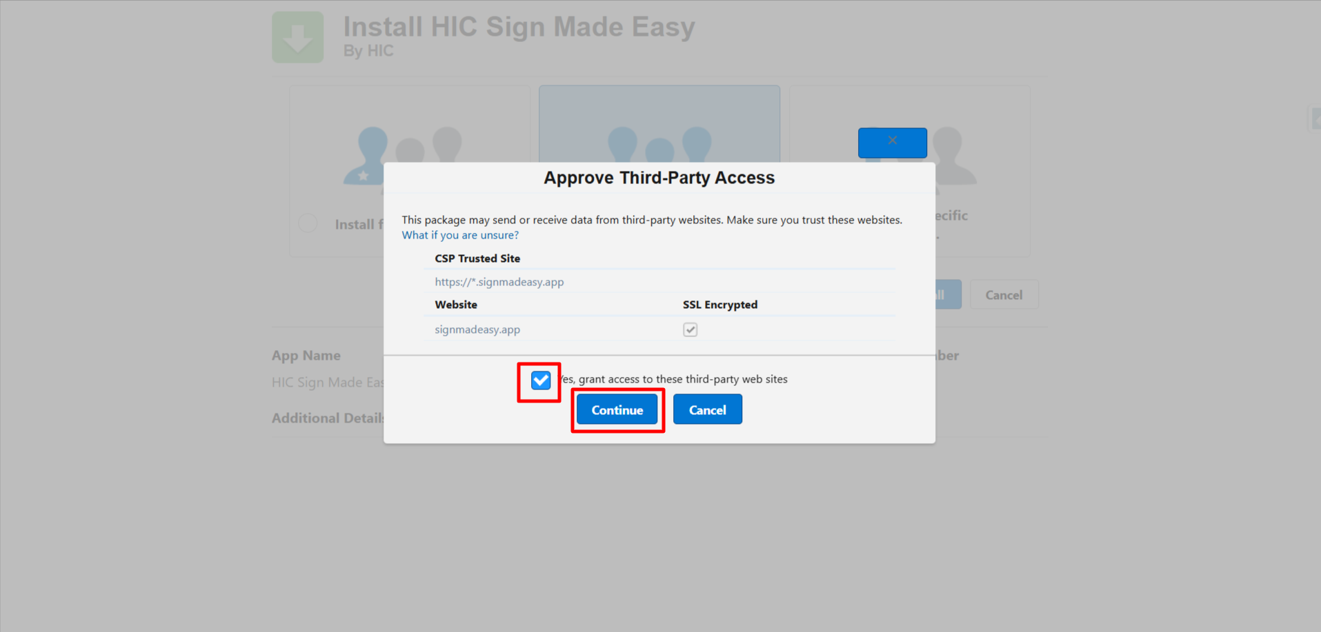 Follow the steps below to install the Sign Made Easy (SME) package in Salesforce: