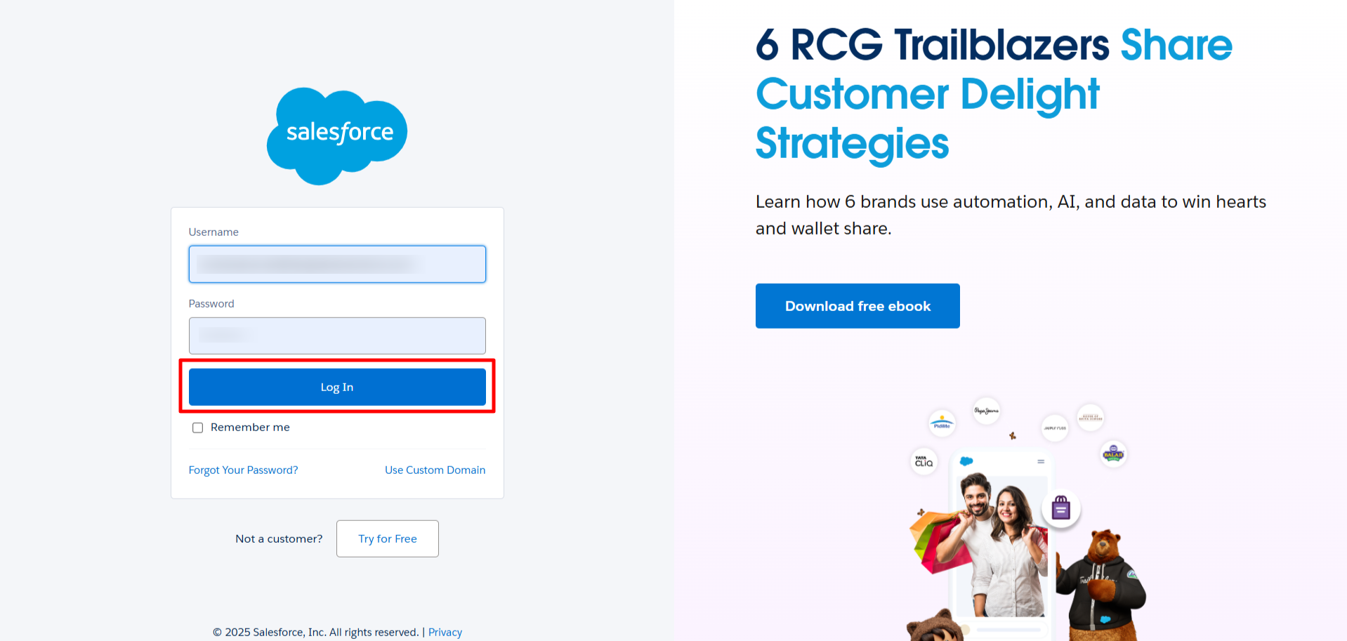 Step 4 :- After clicking ‘Confirm’ and ‘Install’, you will be redirected to the Salesforce login page. Sign in using your Salesforce account credentials.