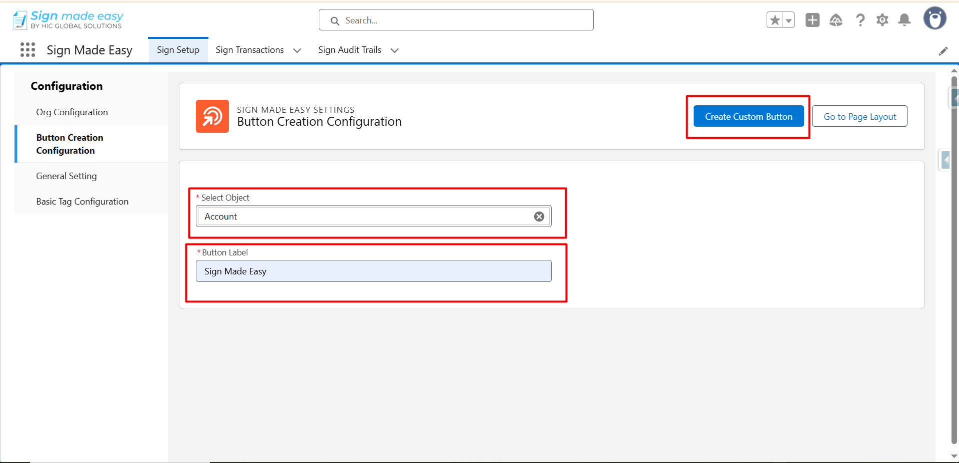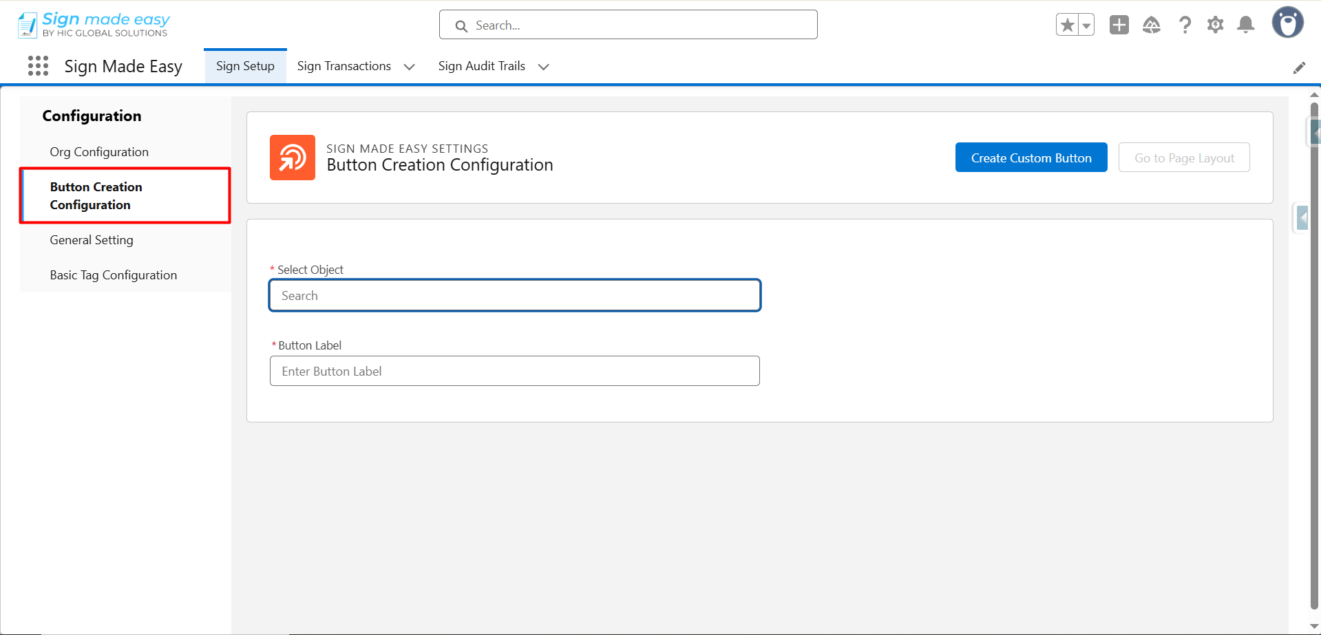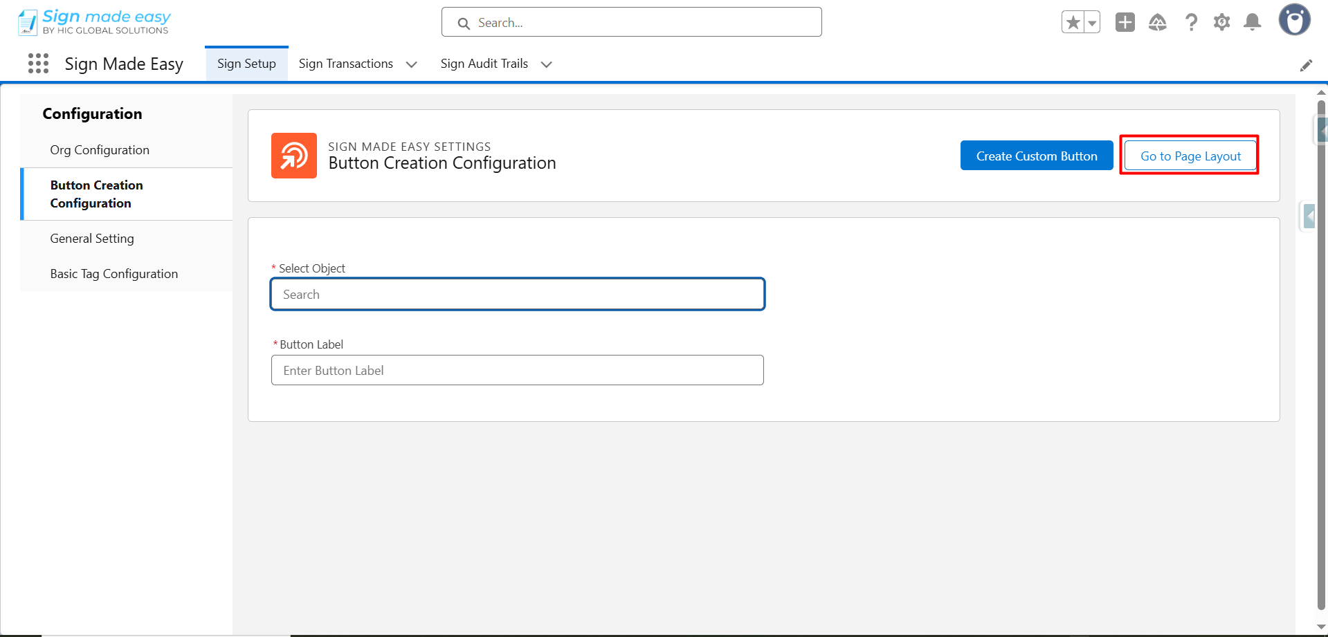 • After successfully completing the SME configuration, proceed to create the Sign Made Easy button. This button enables the initiation of the document sending process for electronic signatures. For more details about SME Configuration, please Click Here.