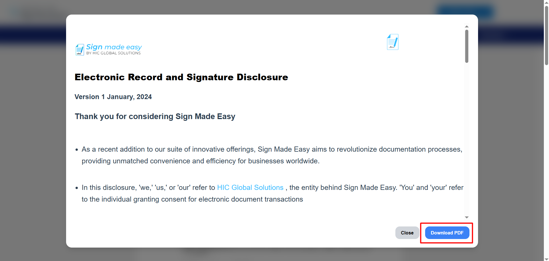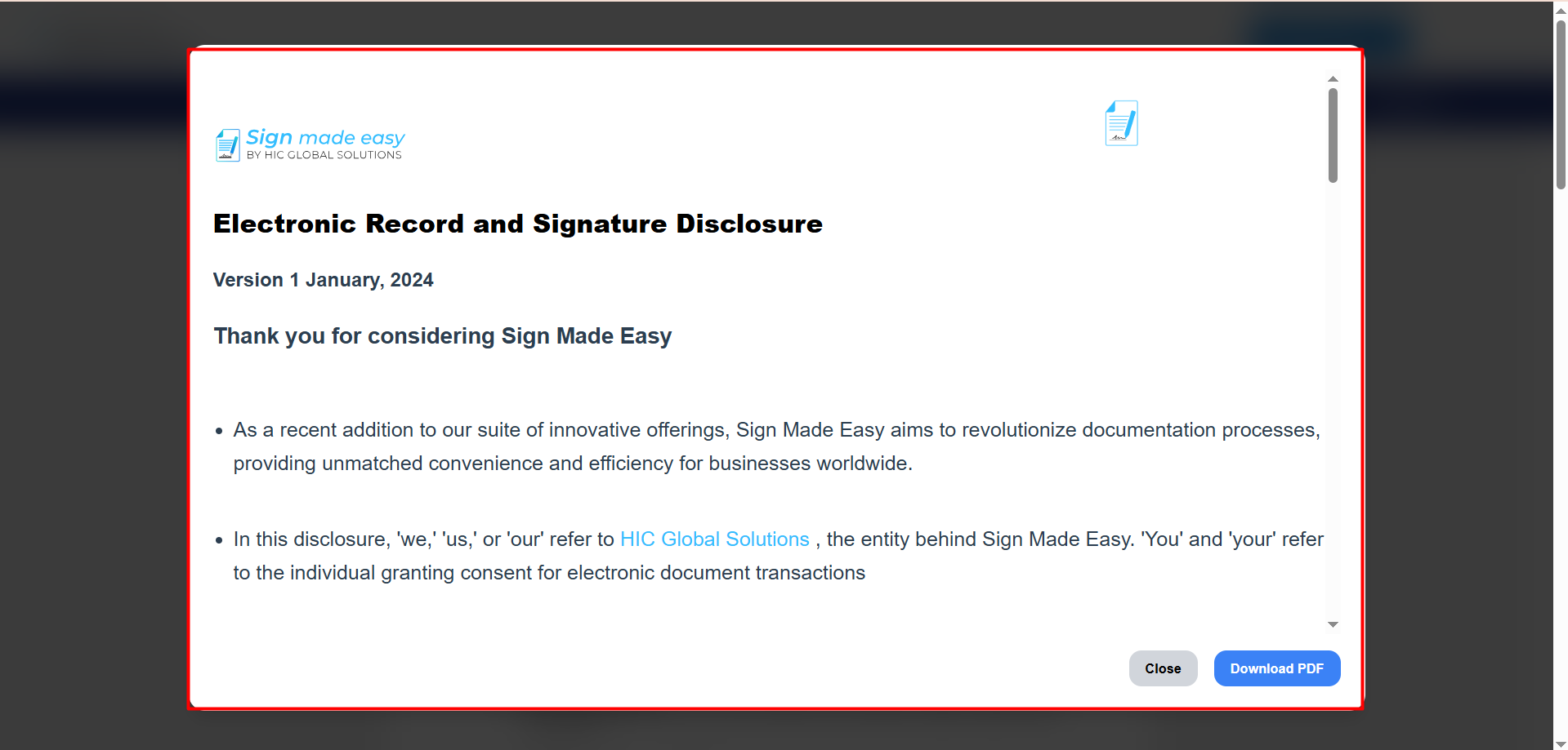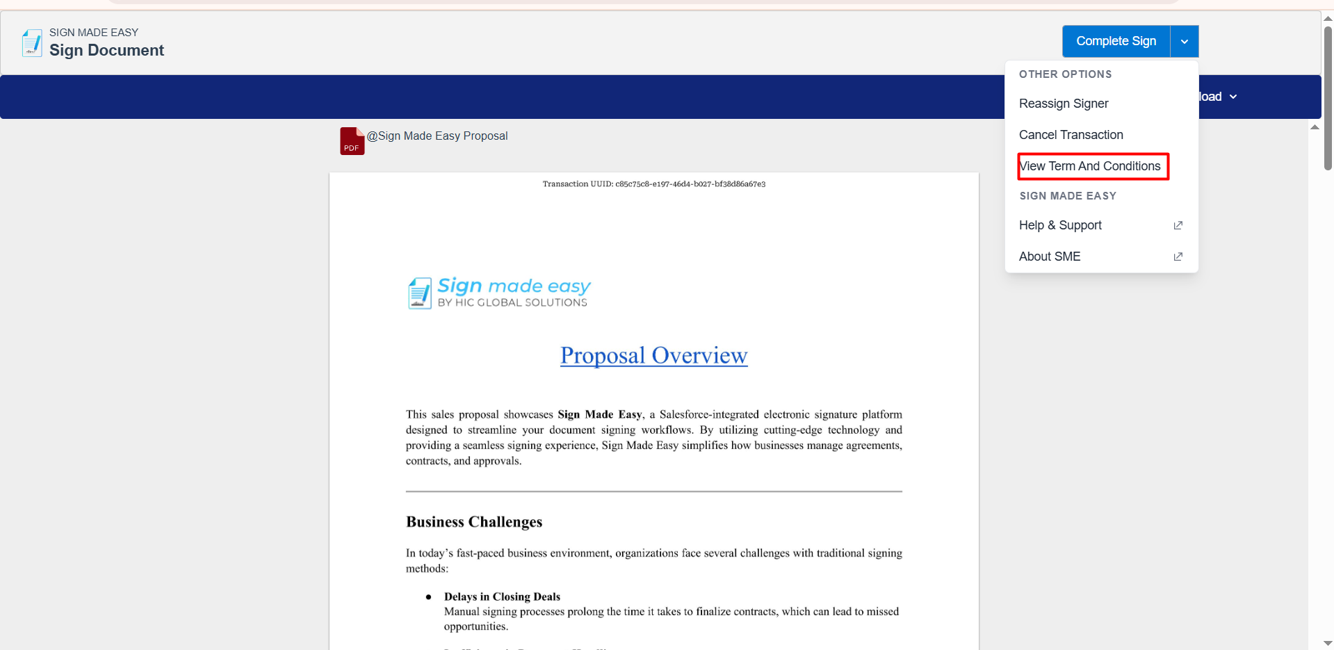 View Terms and Conditions :- Review the terms and conditions governing the e-signature process.