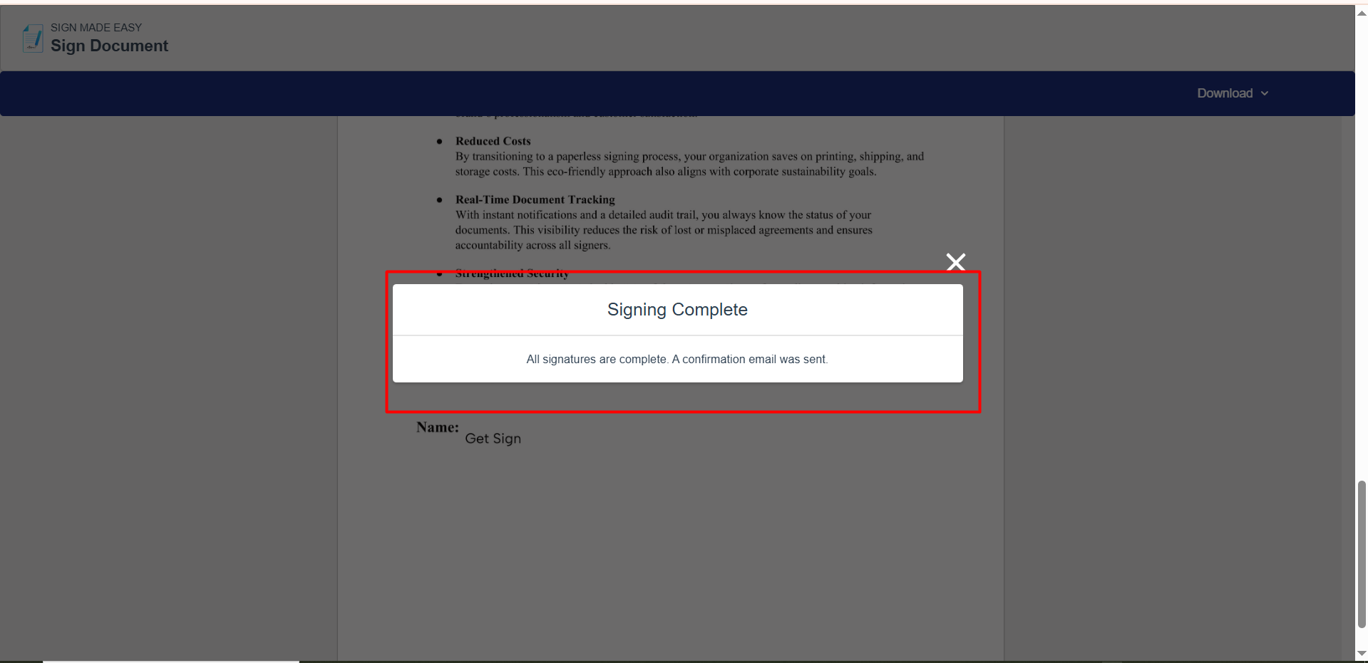 Step 12:- Click the Complete Sign button to finalize the signing process. Once completed, the document will be marked as fully signed. A confirmation email will be sent once all recipients have completed their signatures.