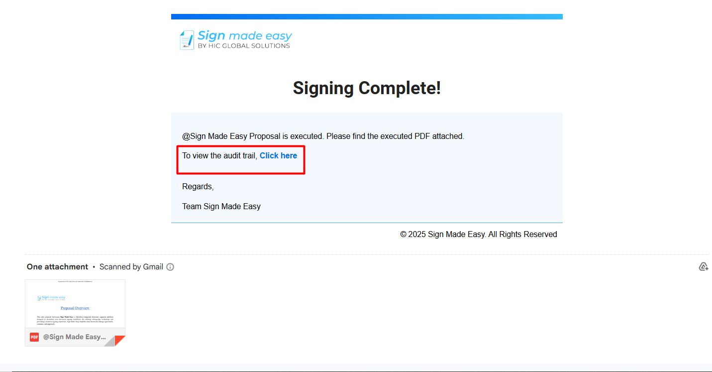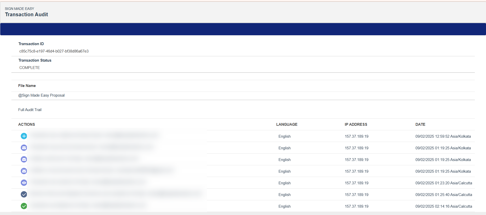 Step 13:- To view detailed transaction and recipient actions, click the 'to view the audit trail link'.