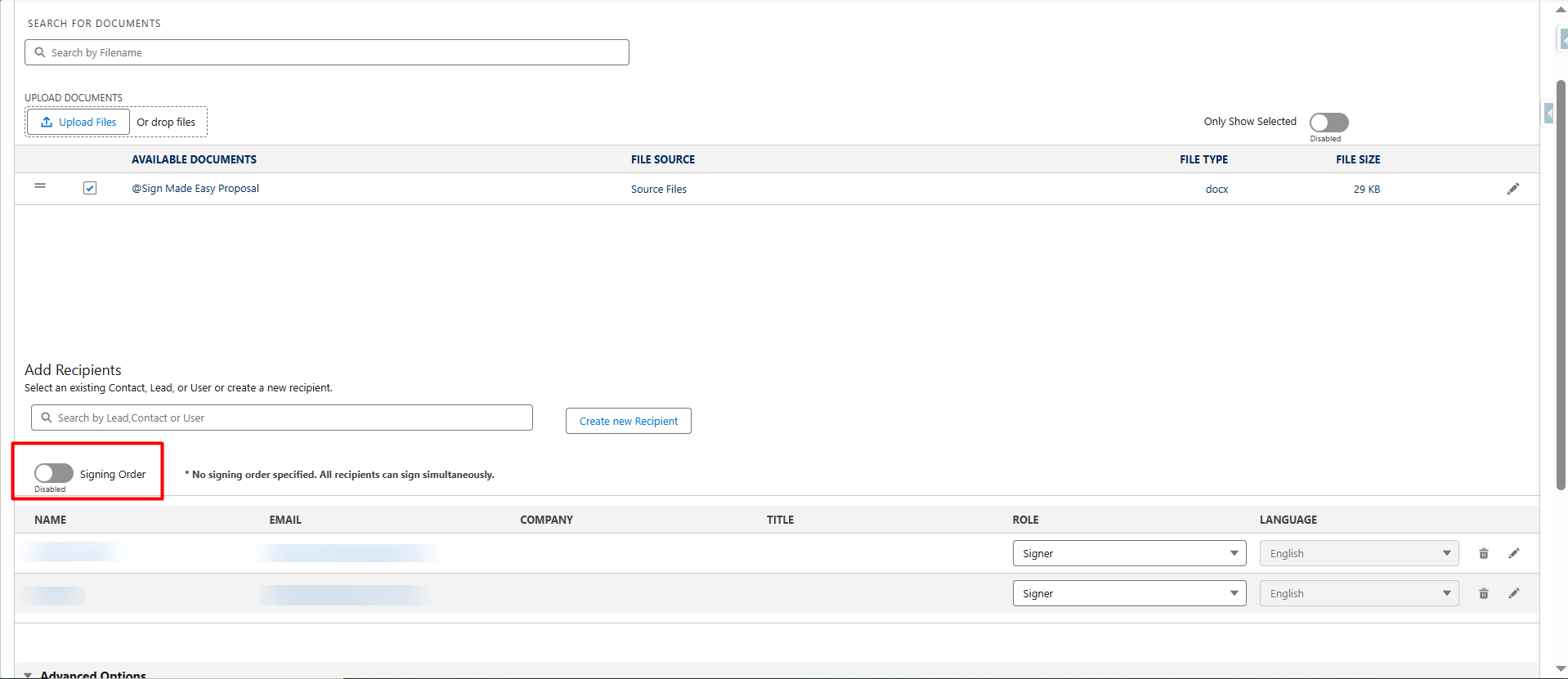 Note :- If Signing Order is enabled, signer notifications are delivered sequentially as per the defined order. If disabled, notifications are sent to all recipients at the same time.