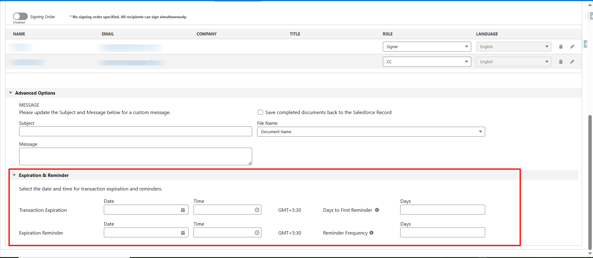 • This section lets you set a transaction’s expiration date and schedule automated reminders to ensure documents are signed on time.