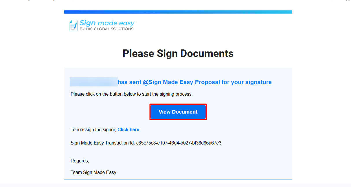 Step 9:- After the documents are sent, recipients will receive an email notification. To complete the e-signature process, they must open the email and click the View Document button.
