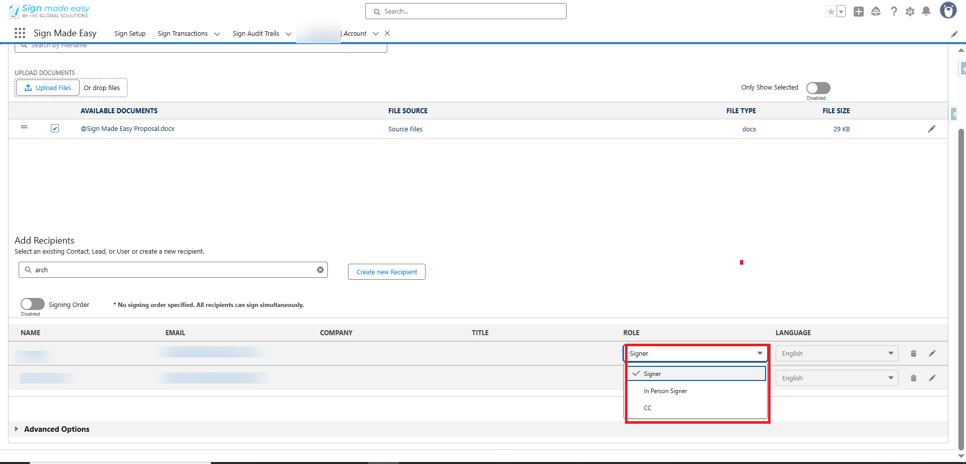 Recipient Roles:- You can modify the recipient’s role as needed. The following three role options are available:
