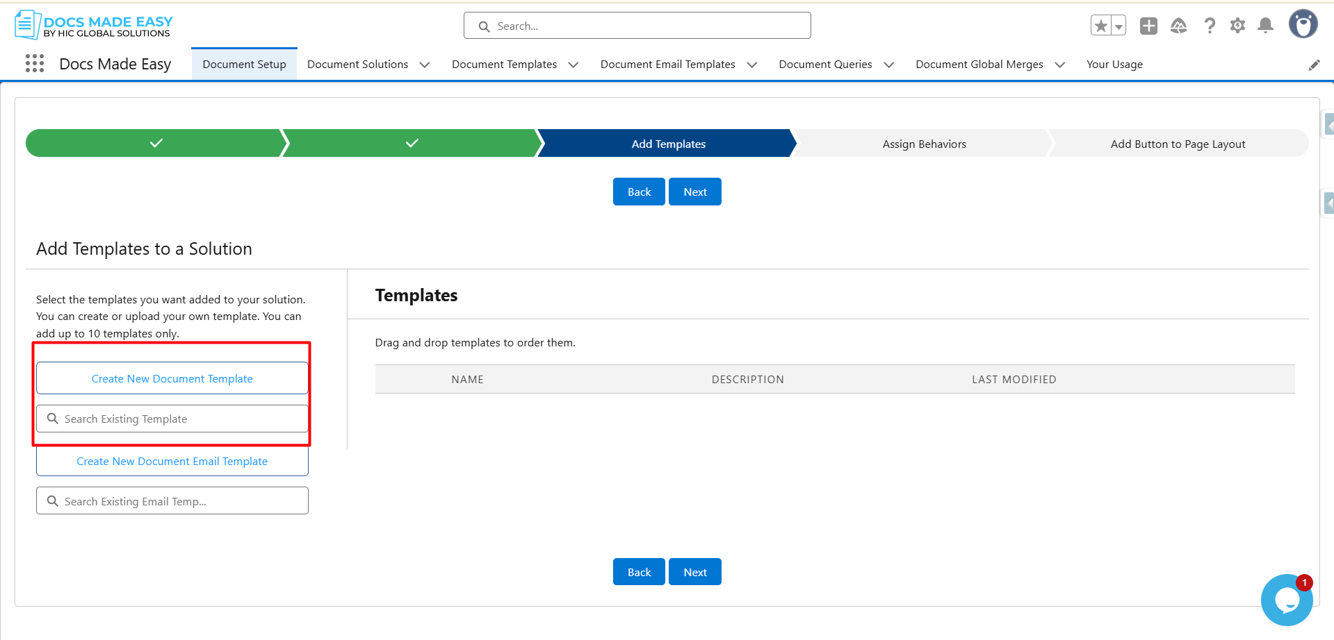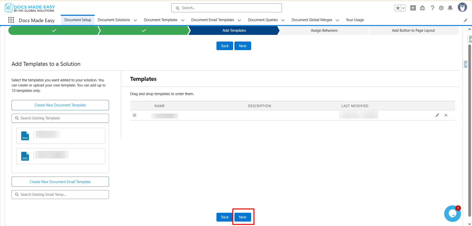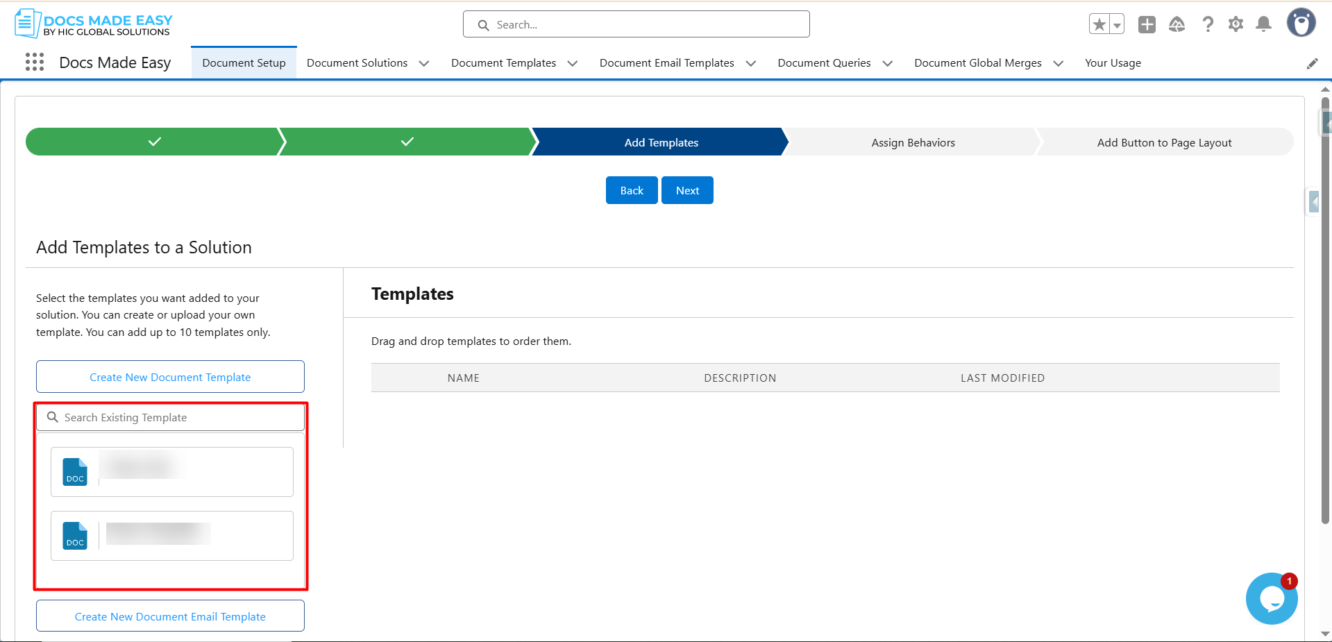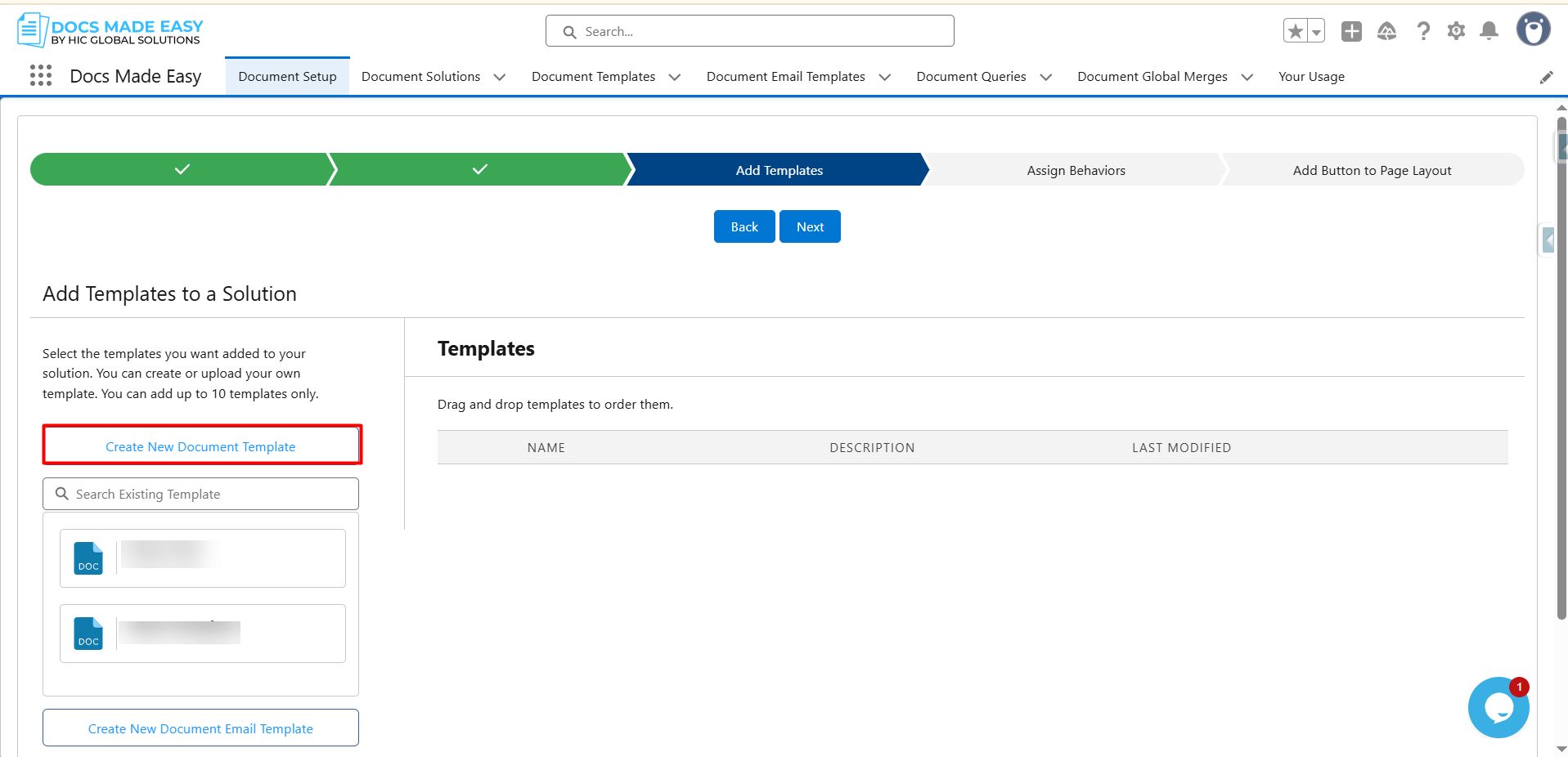 Step 3:- Create a new document template using the Create New Document Template button, or select an existing template from the search bar based on your preference.