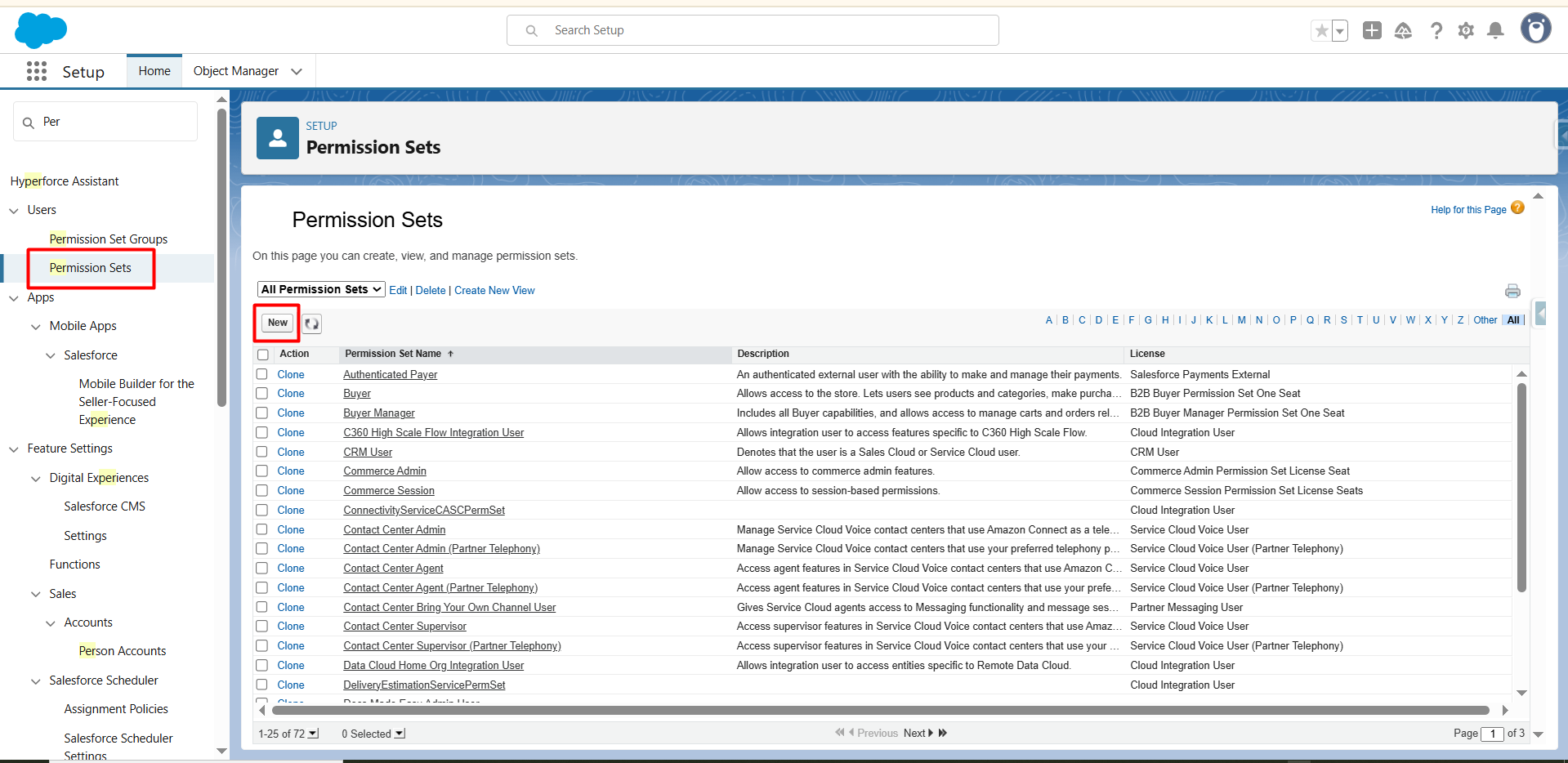 Step 1 :- Navigate to the Salesforce Home page, and in the Quick Find search bar, search for Permission Sets.Step 2 :- Select Permission Sets and create a new permission set by clicking the New button.