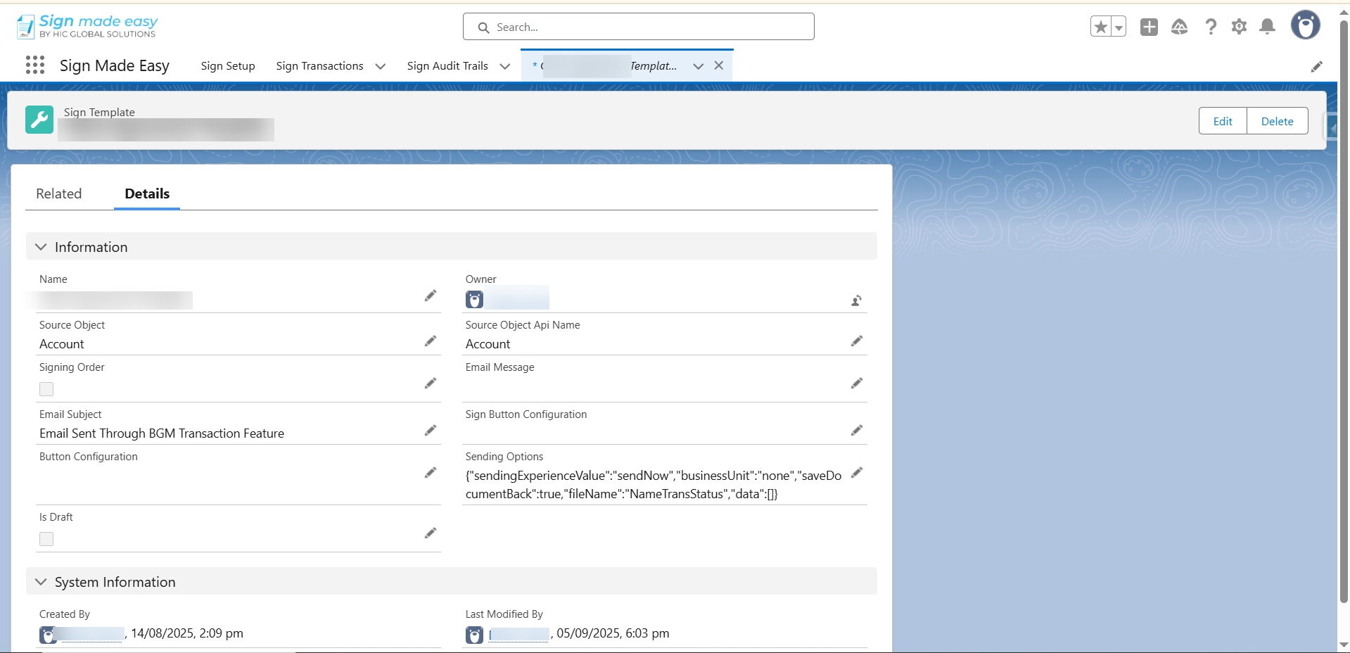 Step 4:- Once the Sign Template record has been created, proceed with the subsequent steps for DME and SME integration.