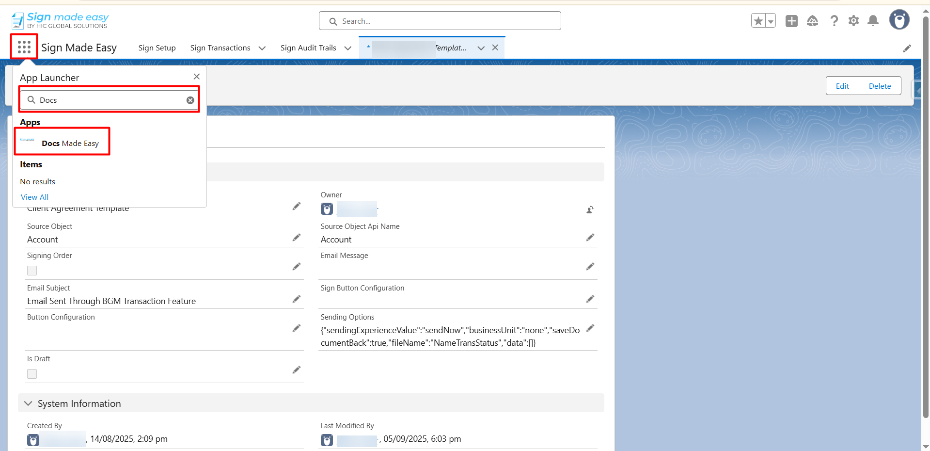 Step 9:- Now, click on the App Launcher and search for the object where you created the Document Template button to send emails to recipients through the BGM Transaction.
