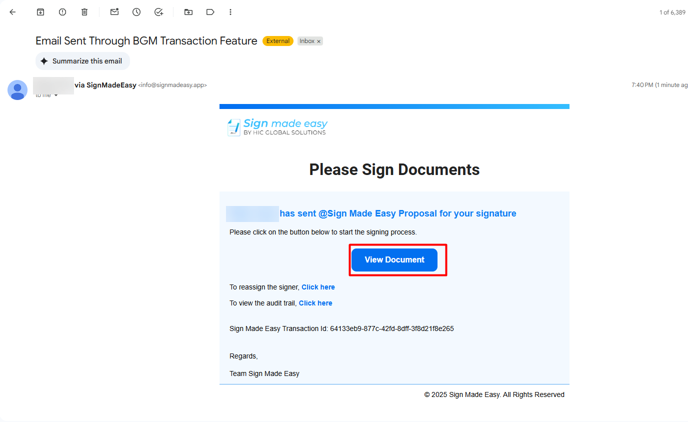 Step 11:- After the templates are sent, recipients will receive an email notification. To complete the e-signature process, then open the email and click the View Document button.