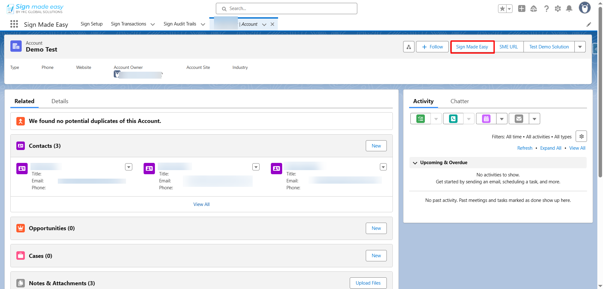 Step 2:- Navigate to the record page of the selected object from which you intend to initiate the SME process. If no record exists, create a new one by clicking the New button before proceeding.
