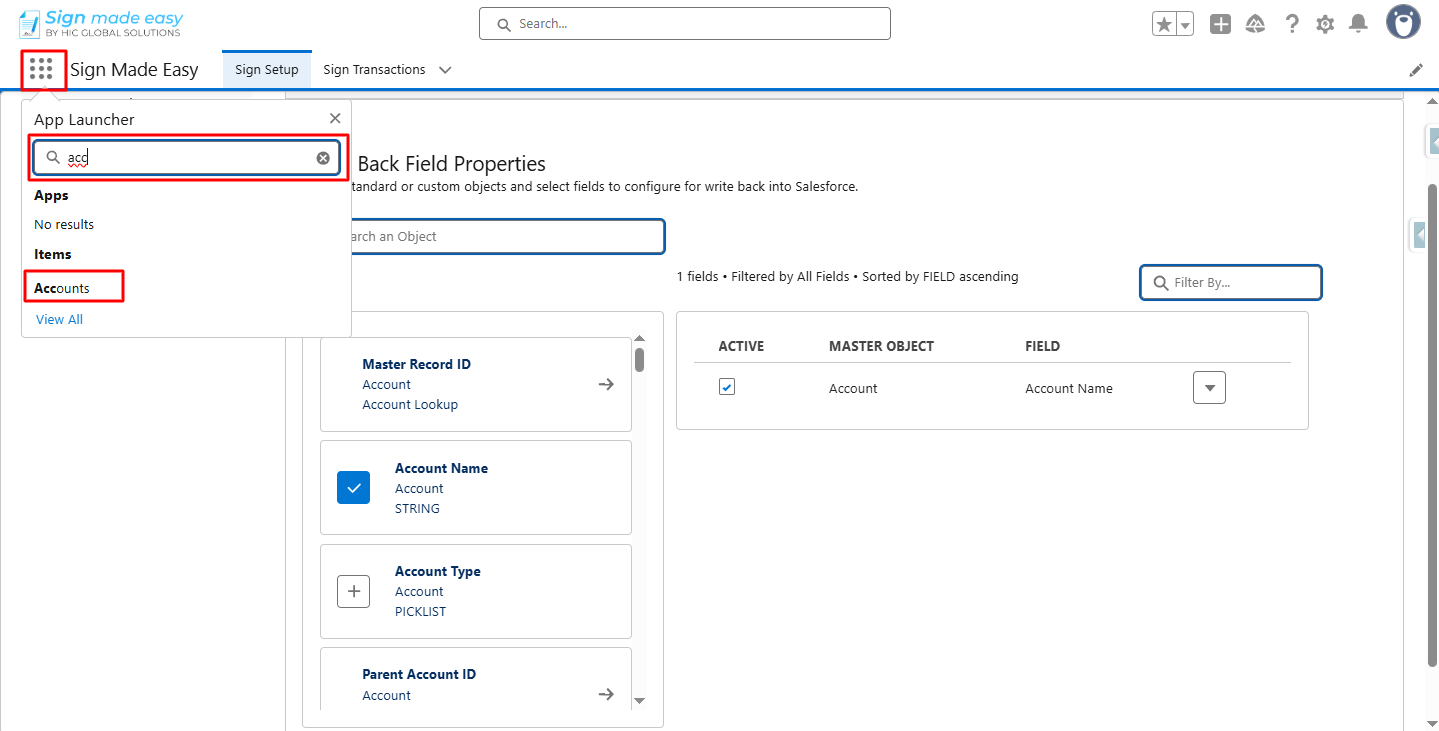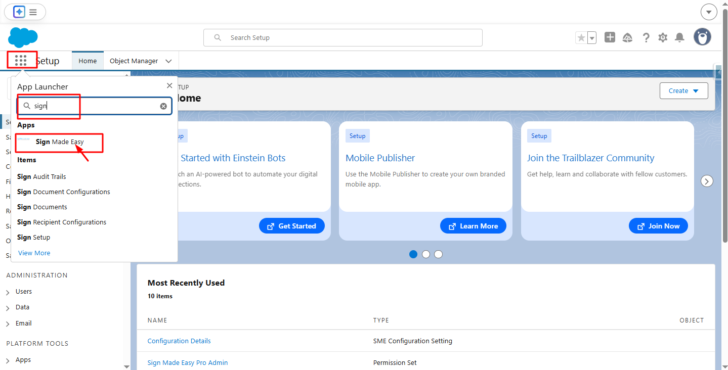 Step 1:-Navigate to App Launcher and in the quick find box search and then select the Sign Made Easy App.