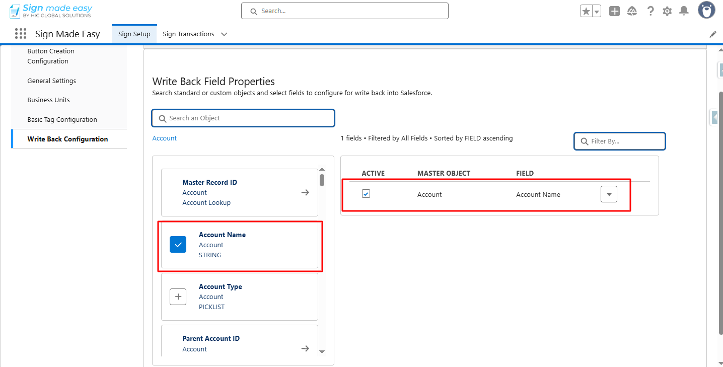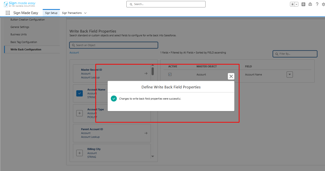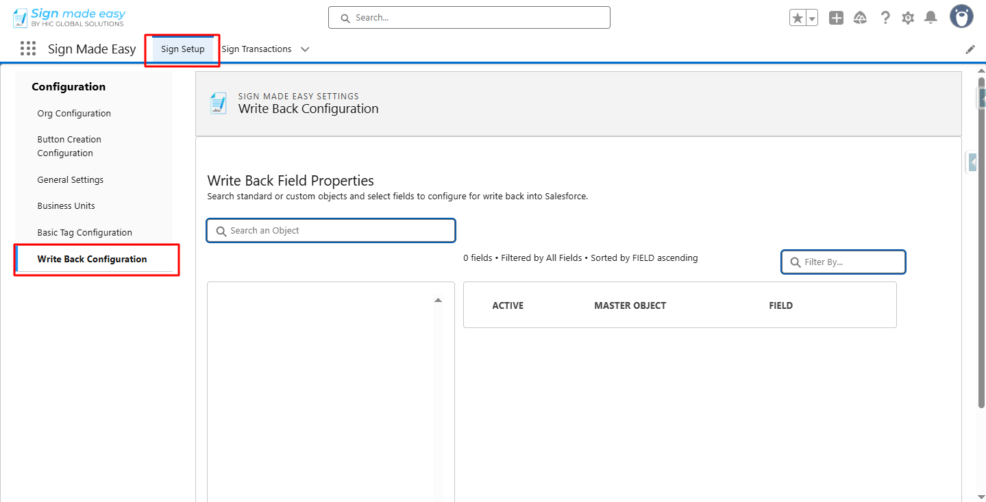 Step 2:- In the Sign Setup tab, select the Write Back Configuration.