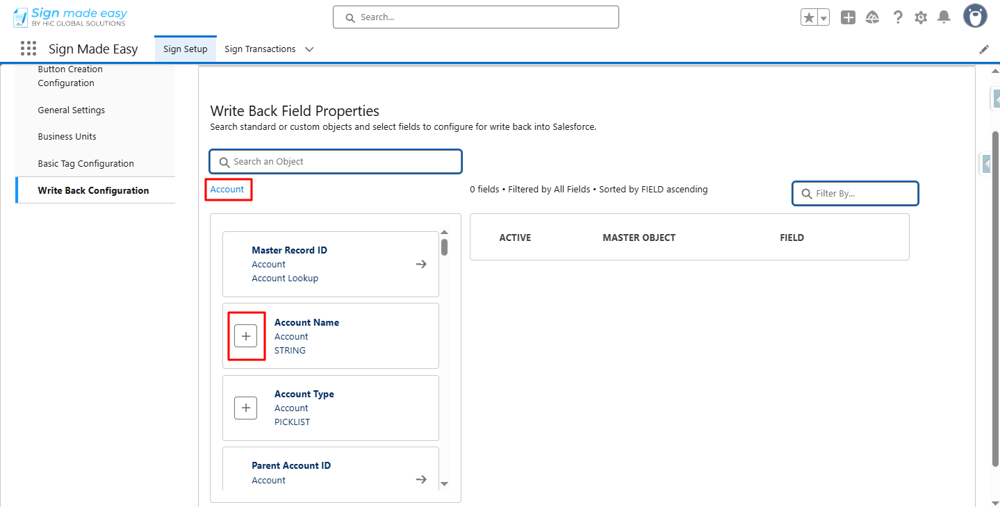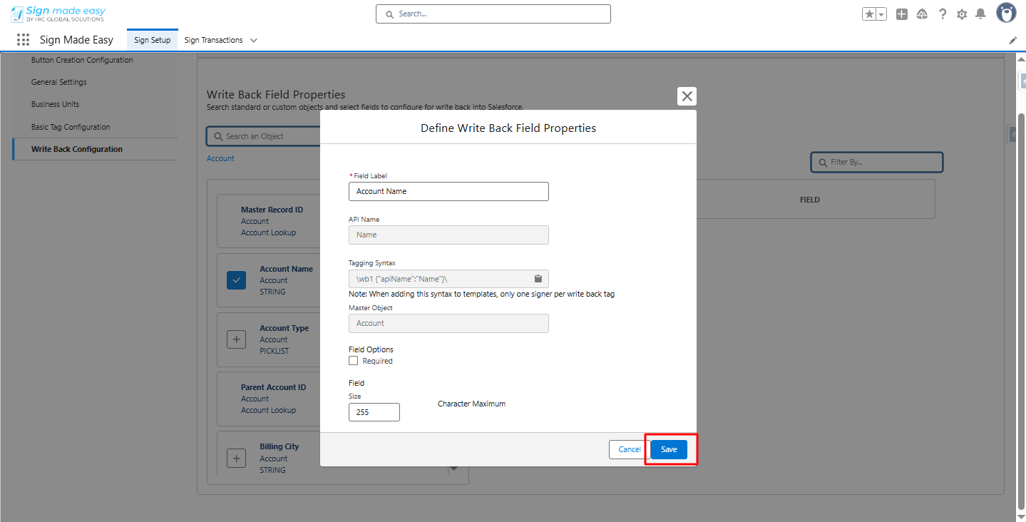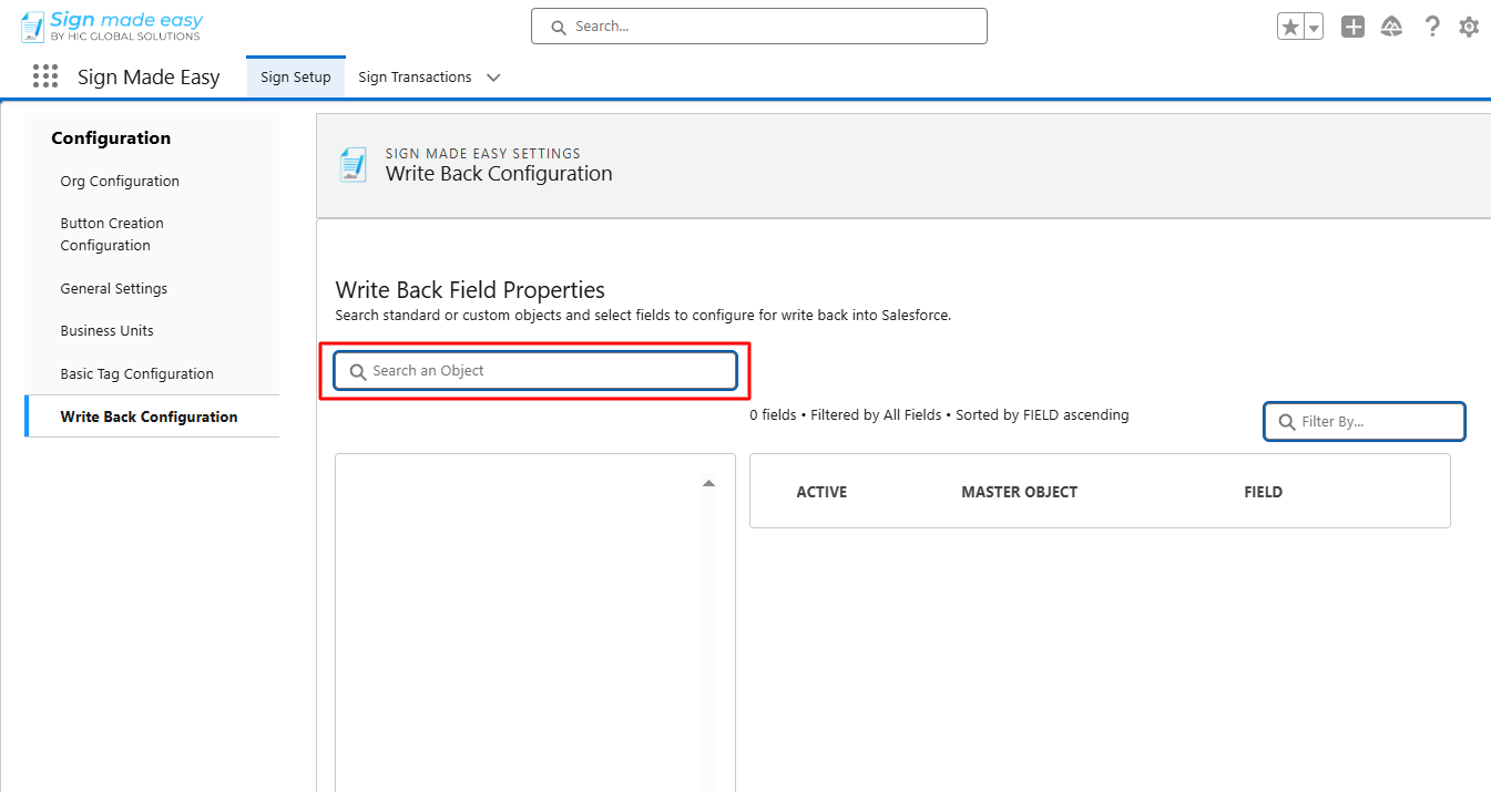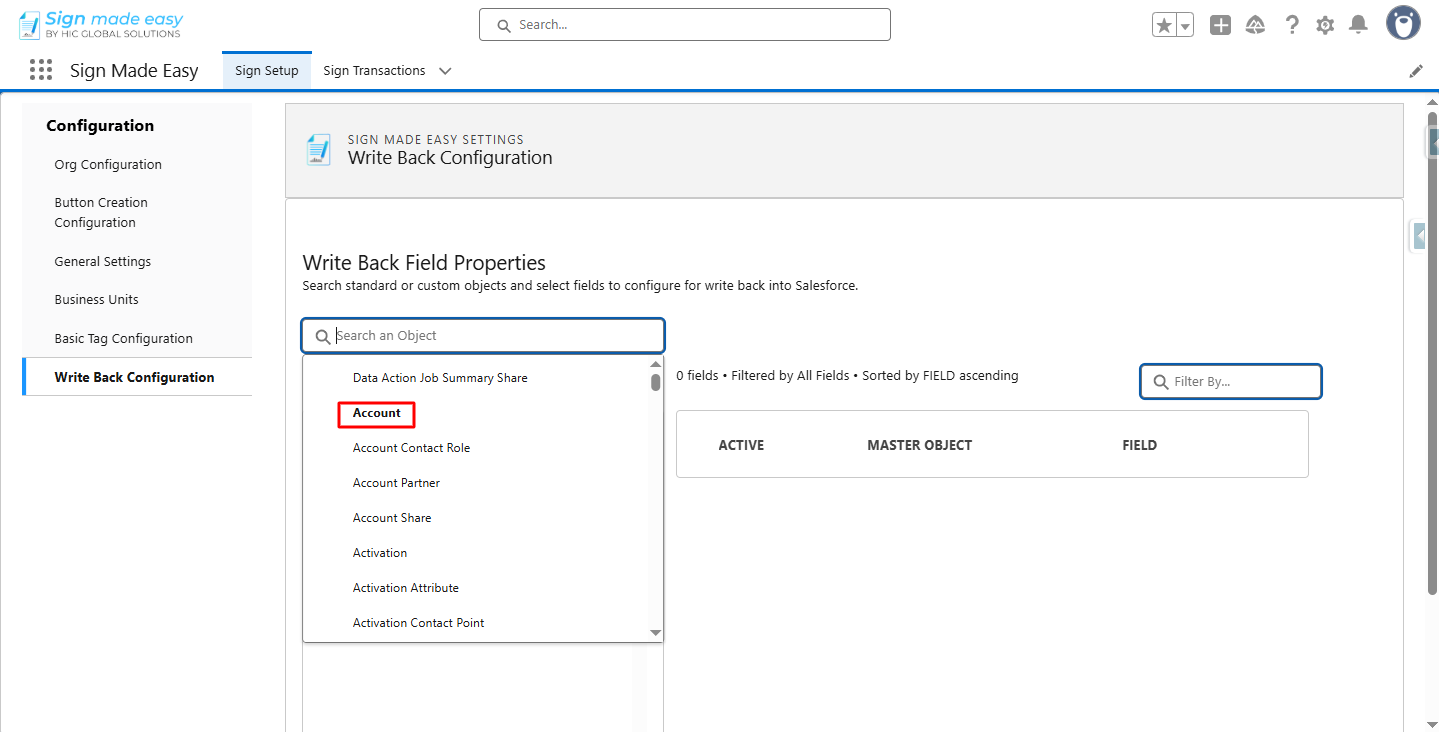 Step 2:- In the Sign Setup tab, select the Write Back Configuration.