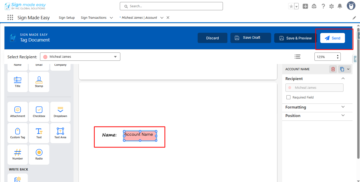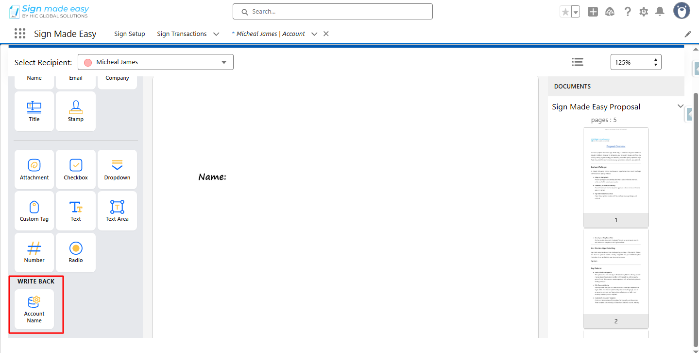 Step 9:- Now, drag and drop the writeback tag onto the documents at the desired locations.