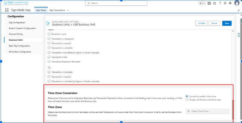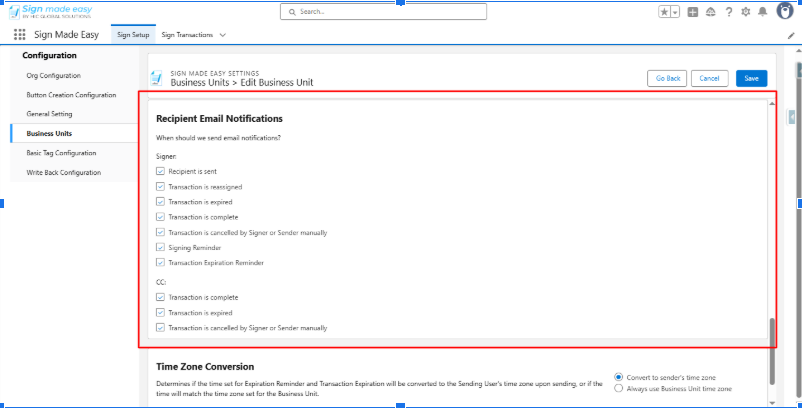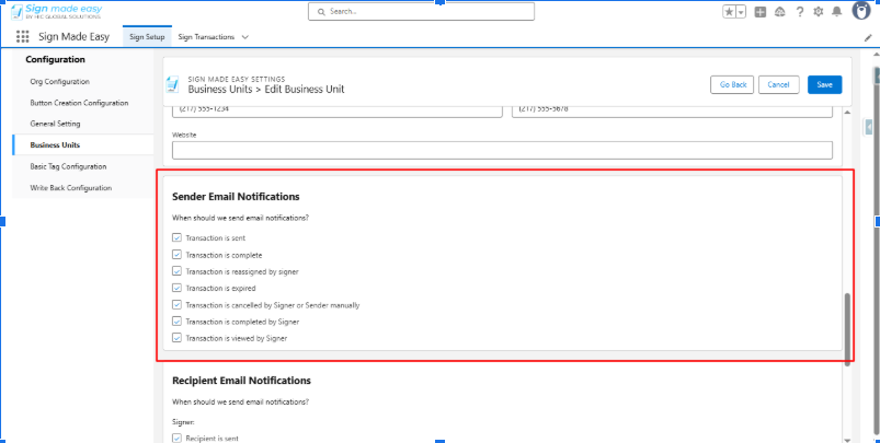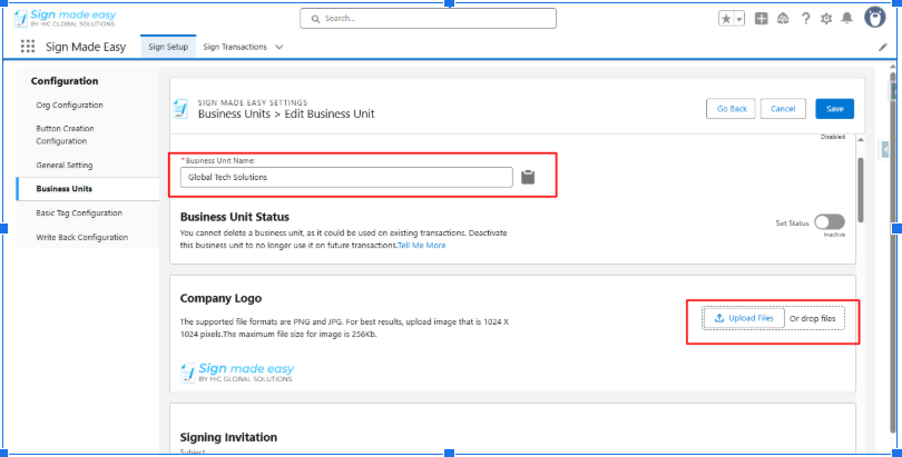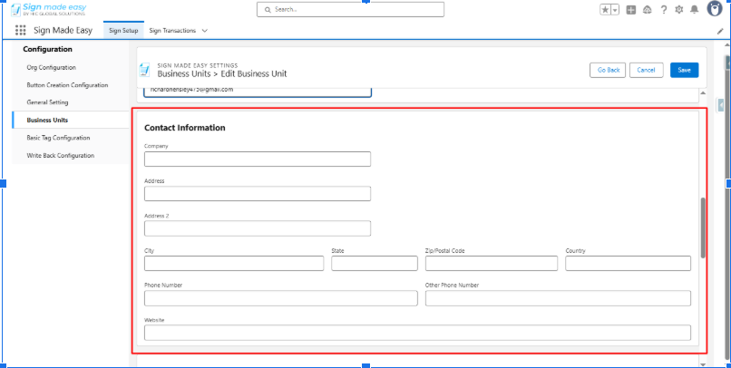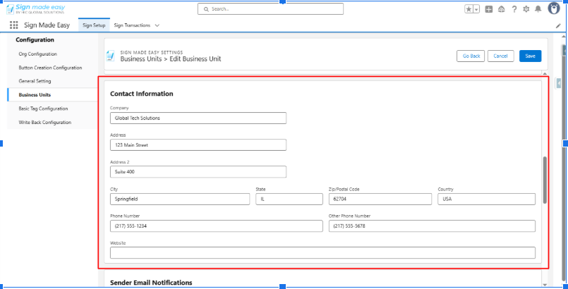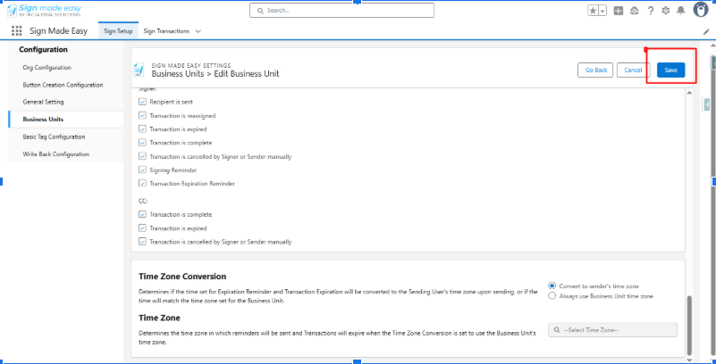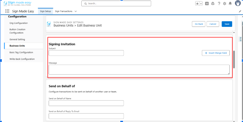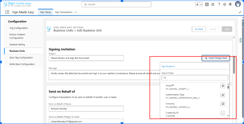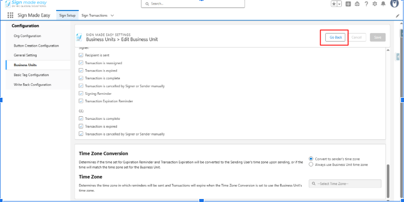 After successfully configuring the Business Unit, the next step is to send a document with the Business Unit for eSignature for Salesforce.