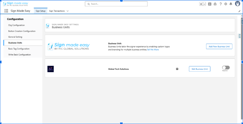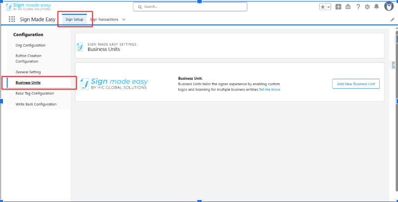 Step 2:- In the Sign Setup tab, navigate to the Business Units component.