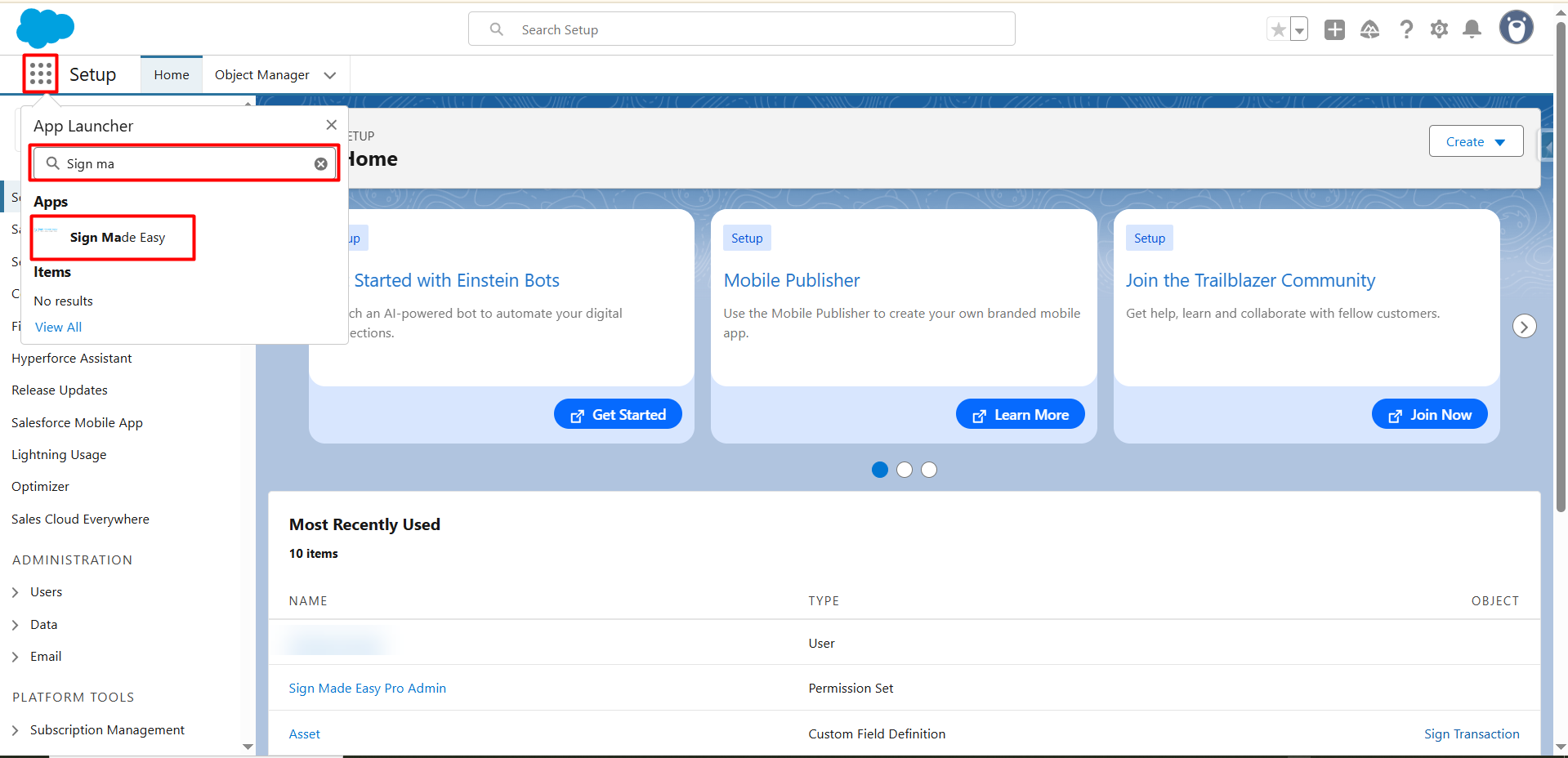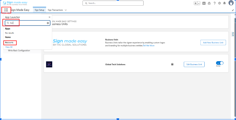 Step 1: Navigate to App Launcher. Search & select the Sign Made Easy app