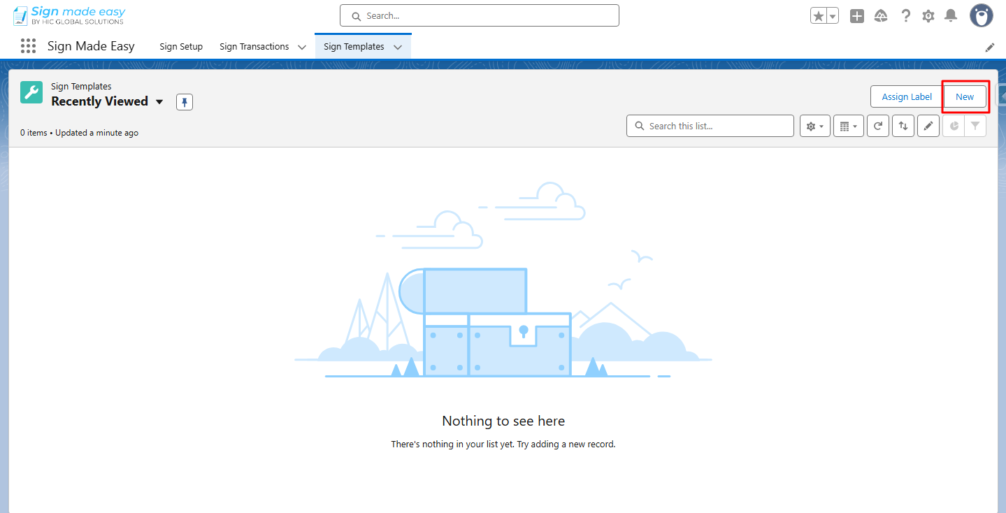 Step 1:- Open the Sign Made Easy app, navigate to the Sign Templates , and click on the New button to create a new template.