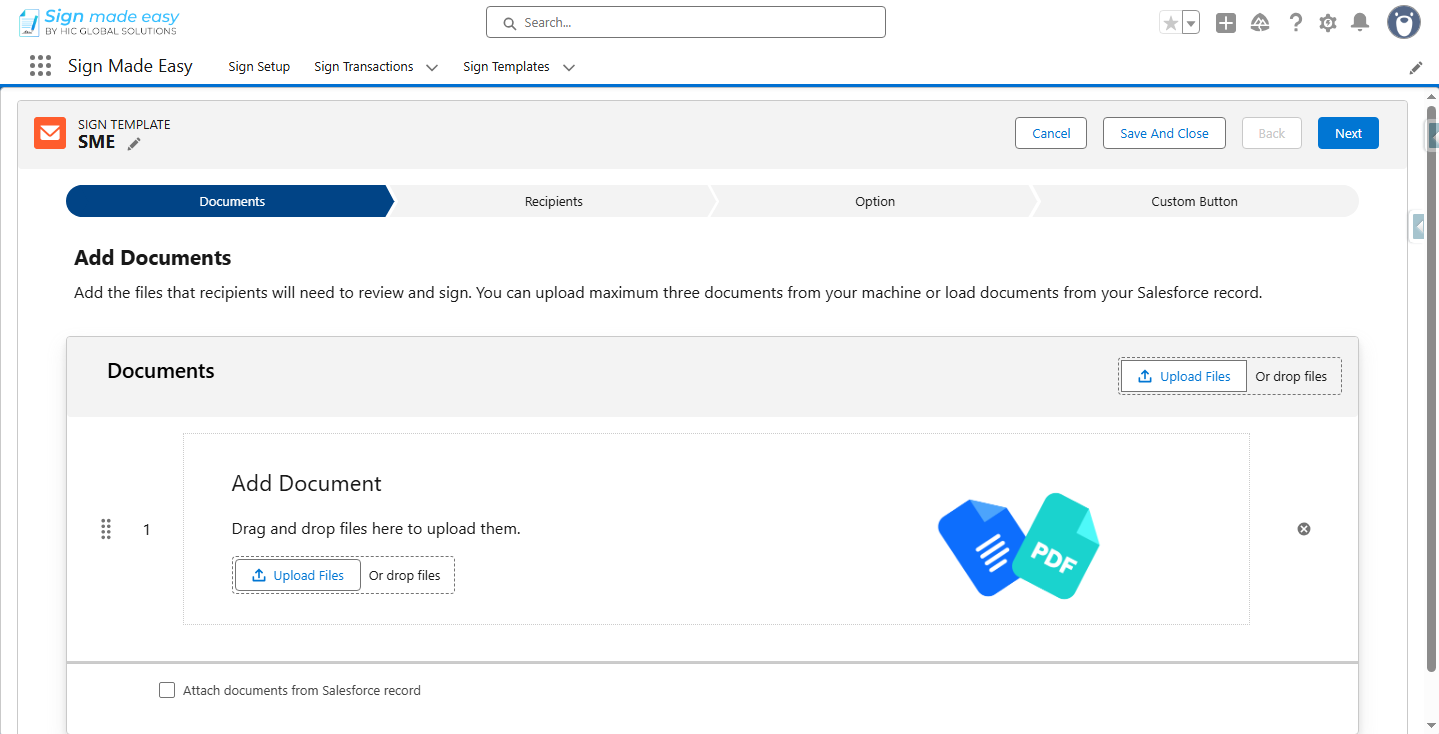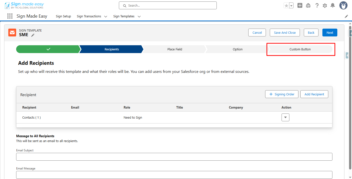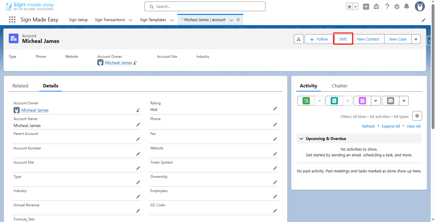 Step 13:- Navigate to the Record Detail Page of the Object for which the Sign Template is created and click the SME (or any other name you have given) button.