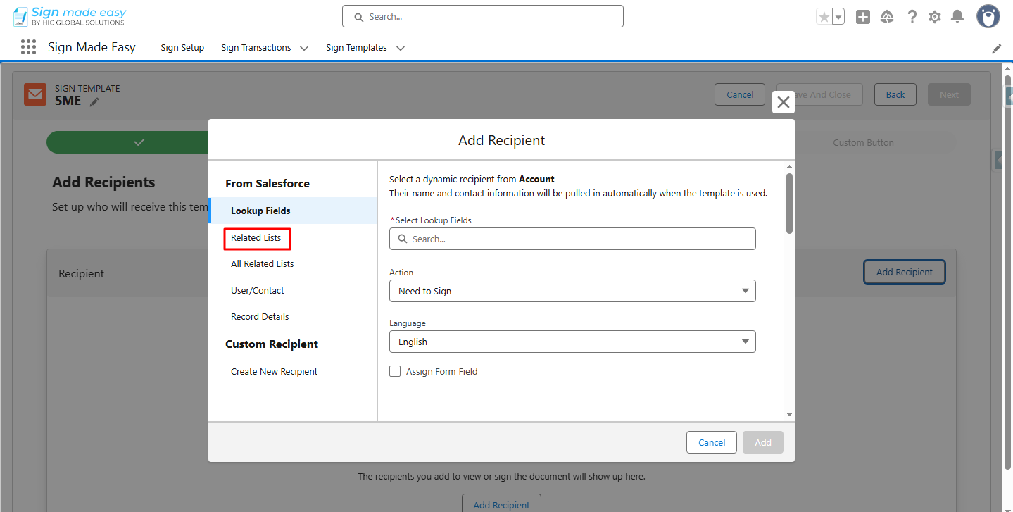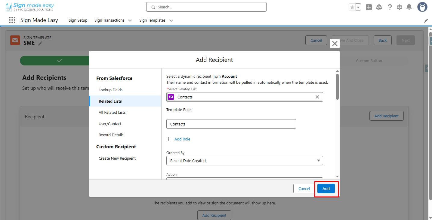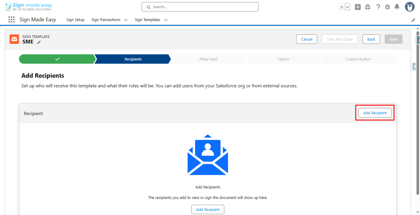 Step 5:- Click Add Recipient to add the recipient.