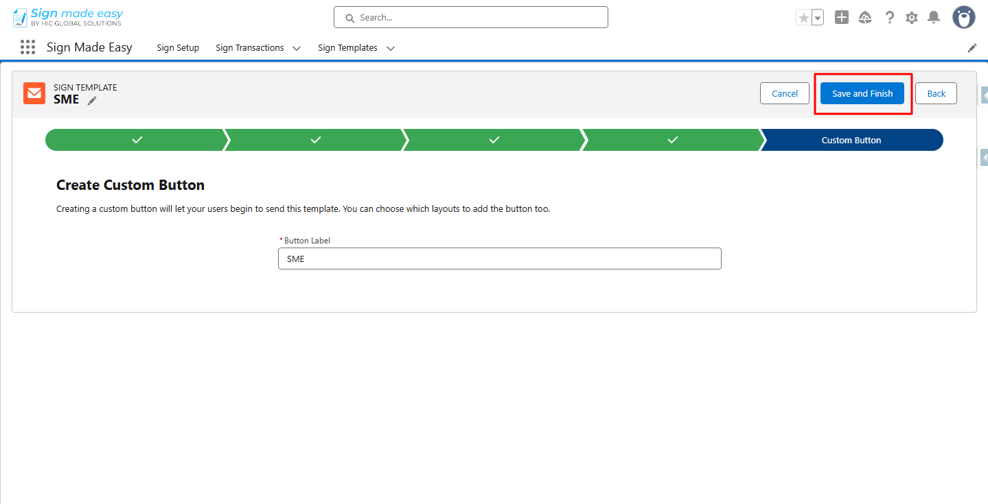 So, the Sign Template name is automatically populated in the Button Label Field.